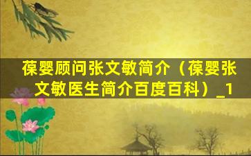 葆婴顾问张文敏简介(葆婴张文敏医生简介百度百科)