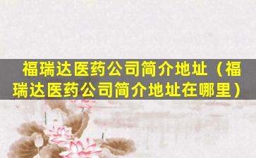 福瑞达医药公司简介地址(福瑞达医药公司简介地址在哪里)