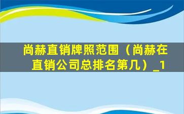 尚赫直销牌照范围(尚赫在直销公司总排名第几)