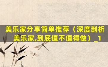 美乐家分享简单推荐(深度剖析美乐家,到底值不值得做)