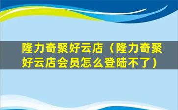 隆力奇聚好云店(隆力奇聚好云店会员怎么登陆不了)