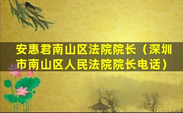 安惠君南山区法院院长(深圳市南山区人民法院院长电话)