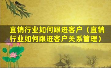 直销行业如何跟进客户(直销行业如何跟进客户关系管理)