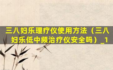 三八妇乐理疗仪使用方法(三八妇乐低中频治疗仪安全吗)
