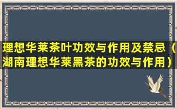 理想华莱茶叶功效与作用及禁忌(湖南理想华莱黑茶的功效与作用)