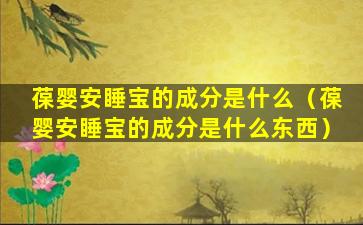 葆婴安睡宝的成分是什么(葆婴安睡宝的成分是什么东西)