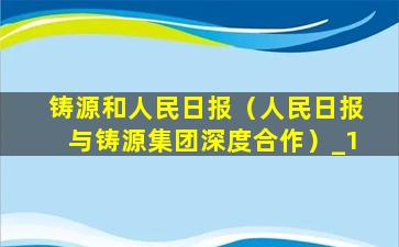 铸源和人民日报(人民日报与铸源集团深度合作)