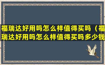 福瑞达好用吗怎么样值得买吗(福瑞达好用吗怎么样值得买吗多少钱)