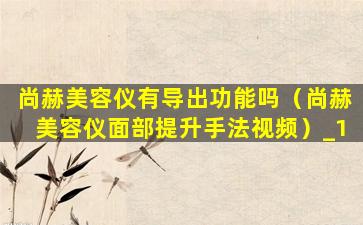 尚赫美容仪有导出功能吗(尚赫美容仪面部提升手法视频)