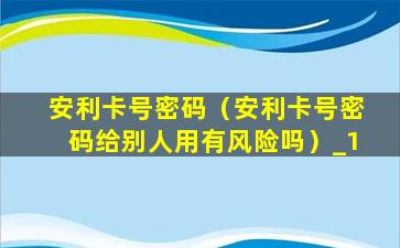 安利卡号密码(安利卡号密码给别人用有风险吗)