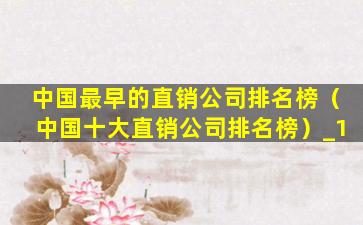中国最早的直销公司排名榜(中国十大直销公司排名榜)
