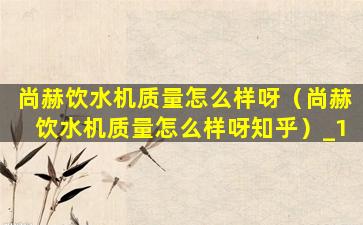 尚赫饮水机质量怎么样呀(尚赫饮水机质量怎么样呀知乎)