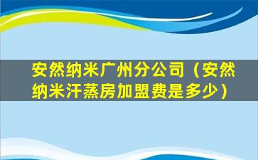 安然纳米广州分公司(安然纳米汗蒸房加盟费是多少)