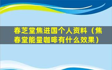 春芝堂焦进国个人资料(焦春堂能量咖啡有什么效果)