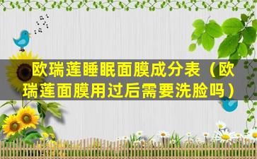 欧瑞莲睡眠面膜成分表(欧瑞莲面膜用过后需要洗脸吗)