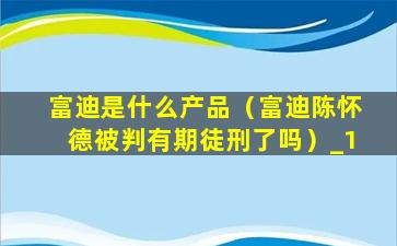 富迪是什么产品(富迪陈怀德被判有期徒刑了吗)