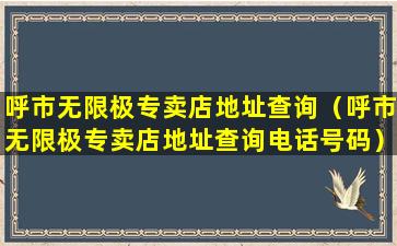 呼市无限极专卖店地址查询(呼市无限极专卖店地址查询电话号码)