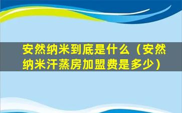 安然纳米到底是什么(安然纳米汗蒸房加盟费是多少)