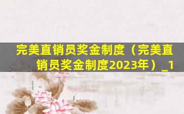 完美直销员奖金制度(完美直销员奖金制度2023年)
