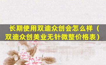 长期使用双迪众创会怎么样(双迪众创美业无针微整价格表)