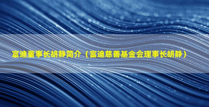富迪董事长胡静简介(富迪慈善基金会理事长胡静)