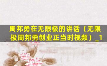周邦勇在无限极的讲话(无限极周邦勇创业正当时视频)