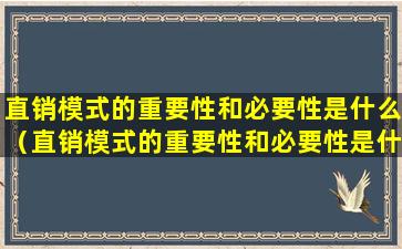 直销模式的重要性和必要性是什么(直销模式的重要性和必要性是什么意思)
