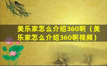 美乐家怎么介绍360啊(美乐家怎么介绍360啊视频)