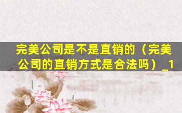 完美公司是不是直销的(完美公司的直销方式是合法吗)