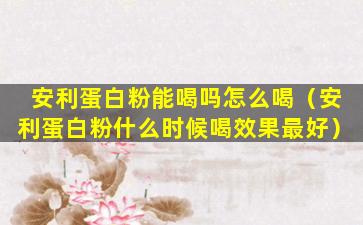 安利蛋白粉能喝吗怎么喝(安利蛋白粉什么时候喝效果最好)