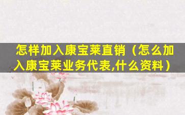 怎样加入康宝莱直销(怎么加入康宝莱业务代表,什么资料)