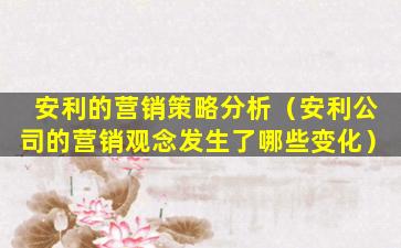 安利的营销策略分析(安利公司的营销观念发生了哪些变化)