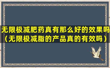 无限极减肥药真有那么好的效果吗(无限极减脂的产品真的有效吗)