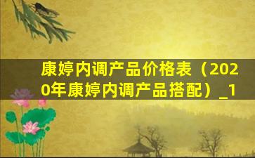 康婷内调产品价格表(2020年康婷内调产品搭配)