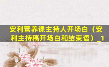 安利营养课主持人开场白(安利主持稿开场白和结束语)