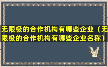 无限极的合作机构有哪些企业(无限极的合作机构有哪些企业名称)