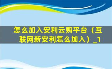怎么加入安利云购平台(互联网新安利怎么加入)