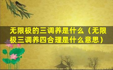 无限极的三调养是什么(无限极三调养四合理是什么意思)
