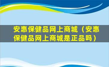 安惠保健品网上商城(安惠保健品网上商城是正品吗)