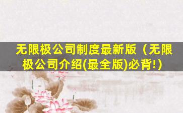 无限极公司制度最新版(无限极公司介绍(最全版)必背!)