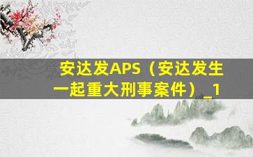 安达发APS(安达发生一起重大刑事案件)