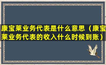 康宝莱业务代表是什么意思(康宝莱业务代表的收入什么时候到账)