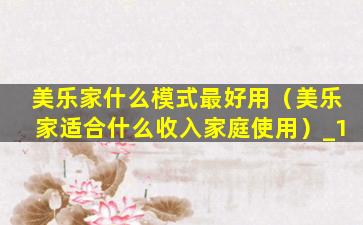 美乐家什么模式最好用(美乐家适合什么收入家庭使用)
