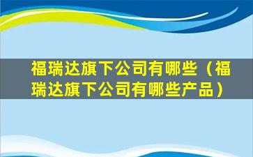 福瑞达旗下公司有哪些(福瑞达旗下公司有哪些产品)
