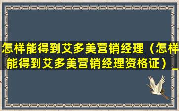 怎样能得到艾多美营销经理(怎样能得到艾多美营销经理资格证)