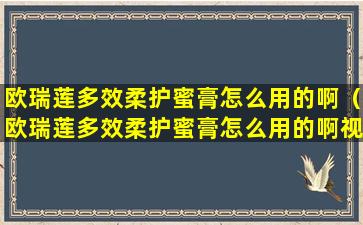 欧瑞莲多效柔护蜜膏怎么用的啊(欧瑞莲多效柔护蜜膏怎么用的啊视频)