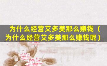 为什么经营艾多美那么赚钱(为什么经营艾多美那么赚钱呢)
