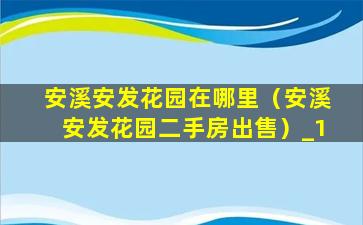 安溪安发花园在哪里(安溪安发花园二手房出售)