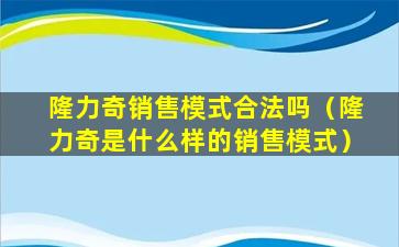 隆力奇销售模式合法吗(隆力奇是什么样的销售模式)