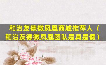 和治友德微凤凰商城推荐人(和治友德微凤凰团队是真是假)